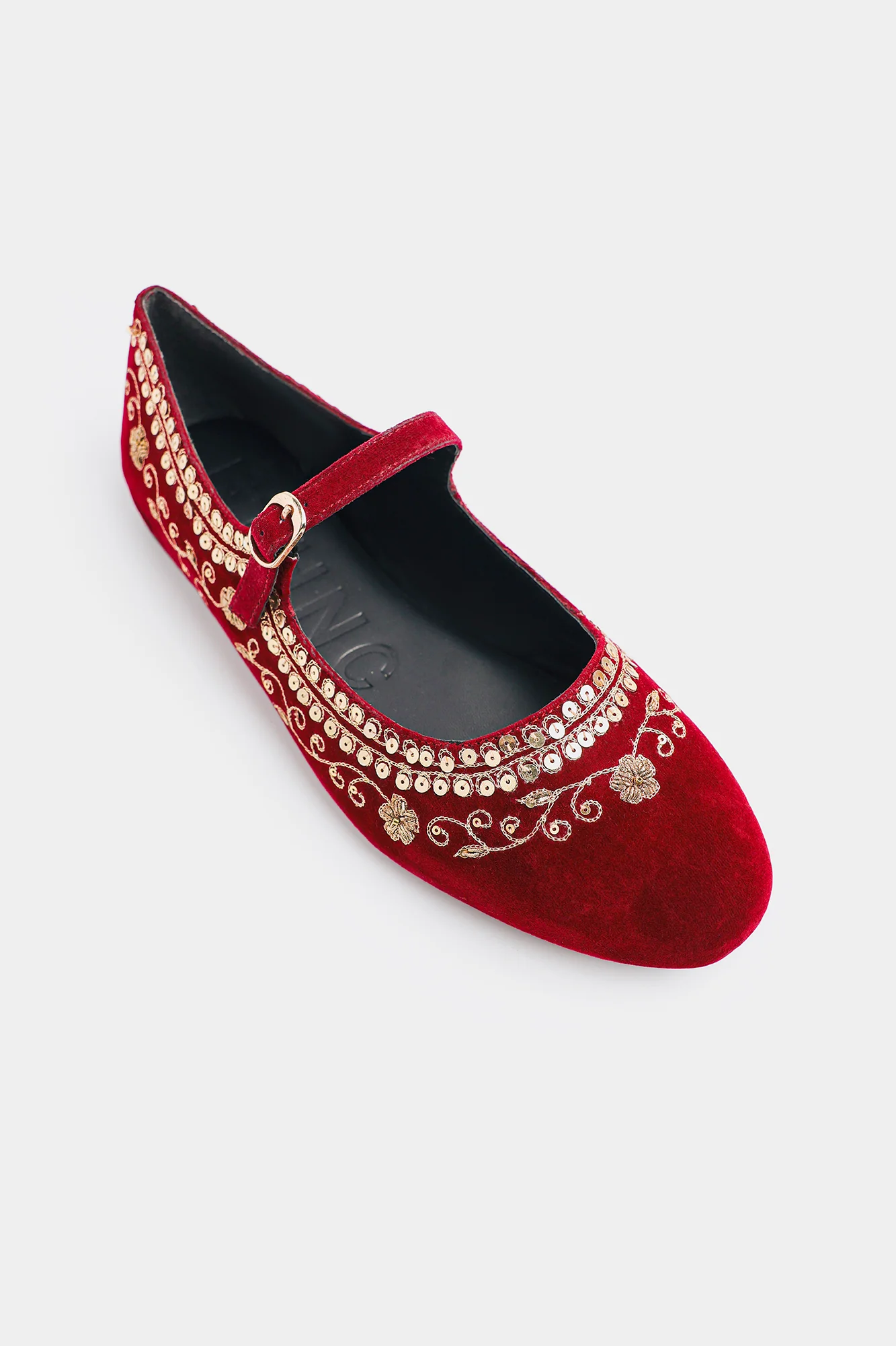 Experience the perfect fusion of heritage craftsmanship and contemporary design with these luxurious velvet pumps. The rich burgundy-red velvet upper exudes festive elegance, while intricate Zari and Tilla gold thread embroidery,, intertwined with delicate sequins creates mesmerizing floral and scroll patterns across the vamp. These pumps seamlessly blend traditional artisanal techniques with contemporary style—perfect for celebrations and special occasions.
