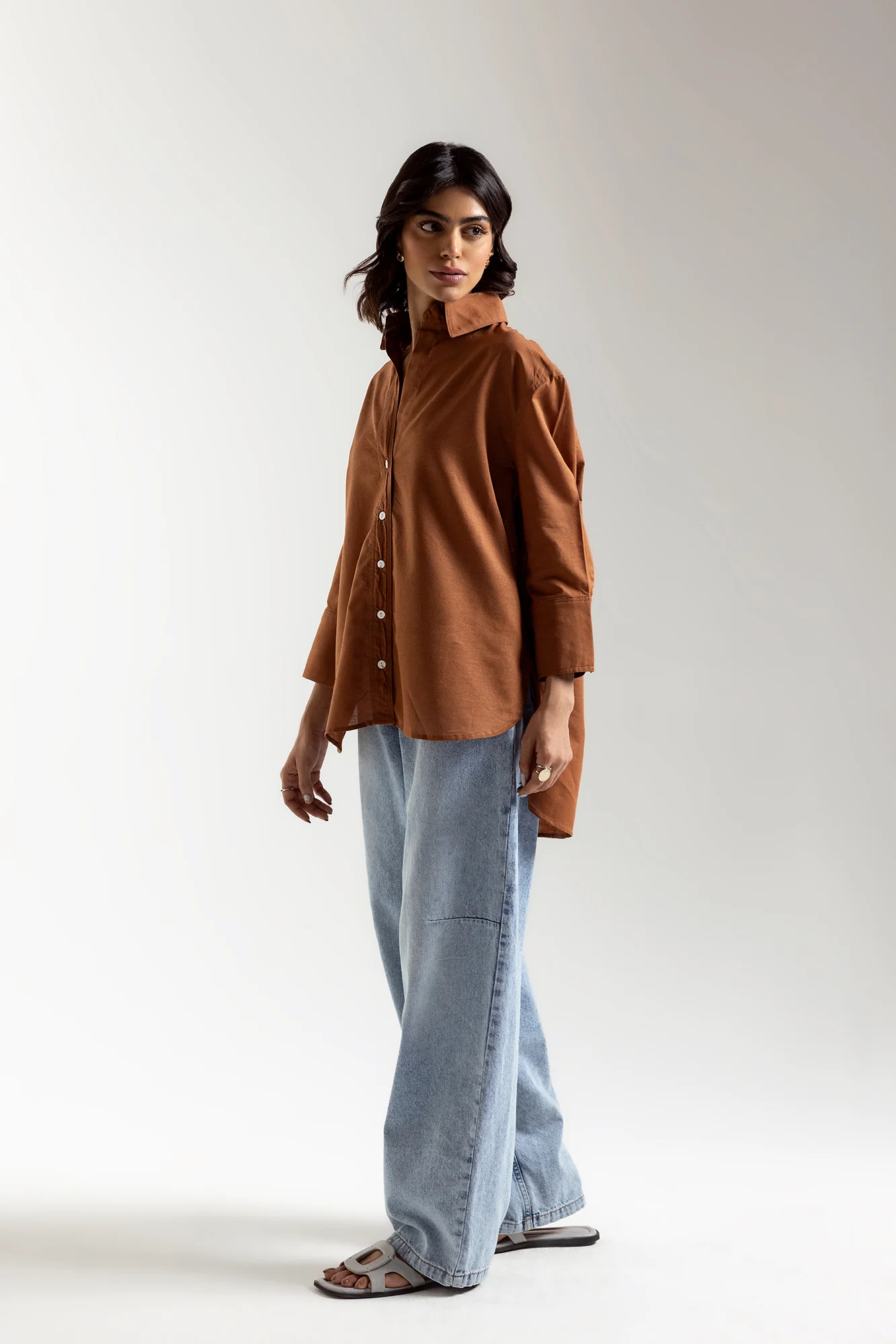 Effortlessly chic and stylish, this lightweight button down top boasts a beautiful brown color and intricate design. crafted in a trendy textured fabric and quarter sleeves, this modern piece is perfect for any upcoming fun occasion. Elevate your wardrobe with this trendy top.
